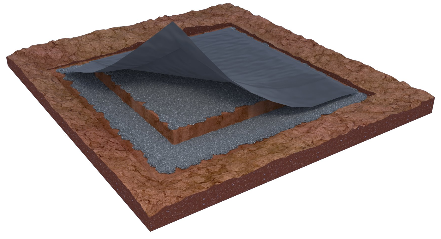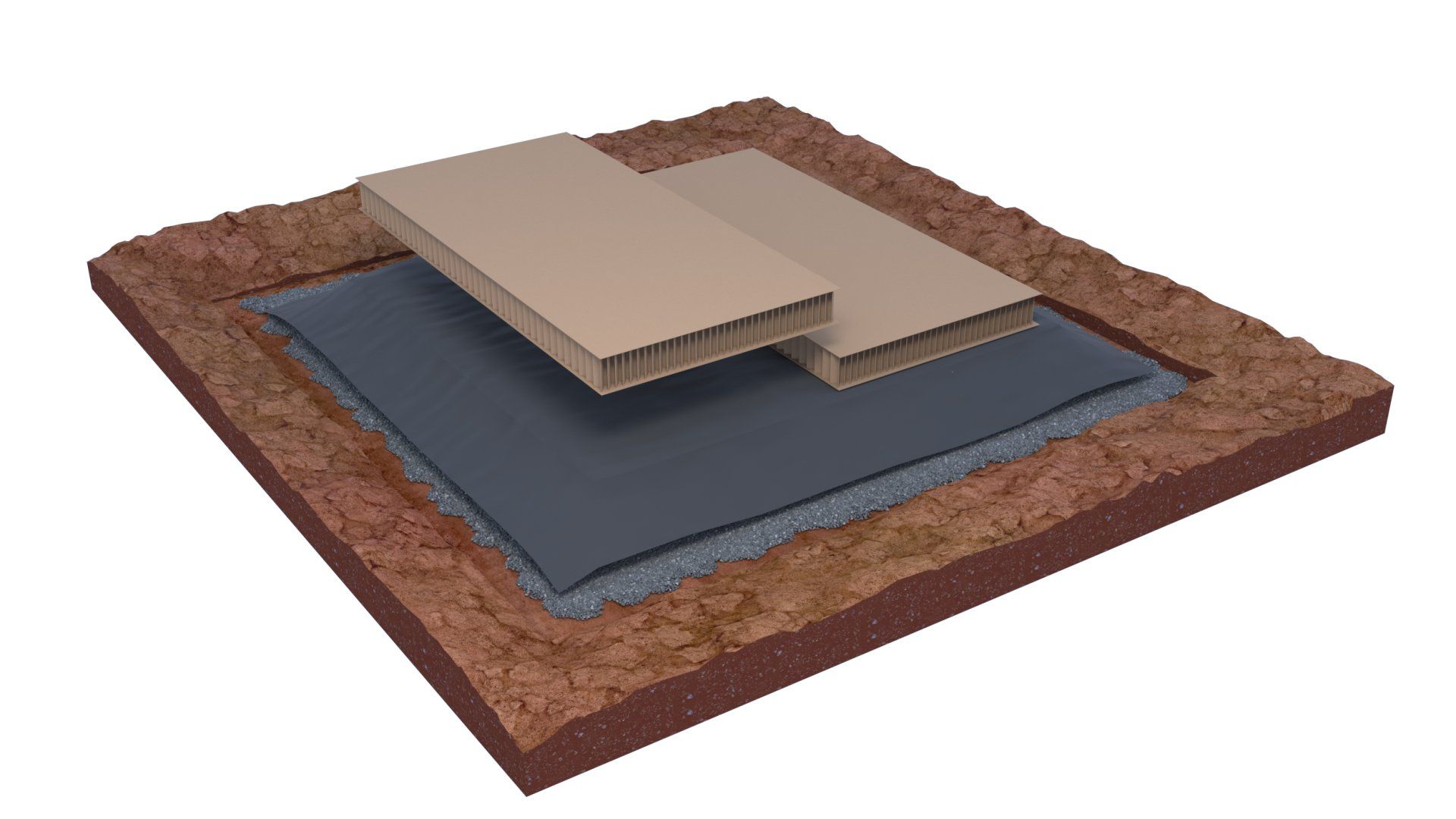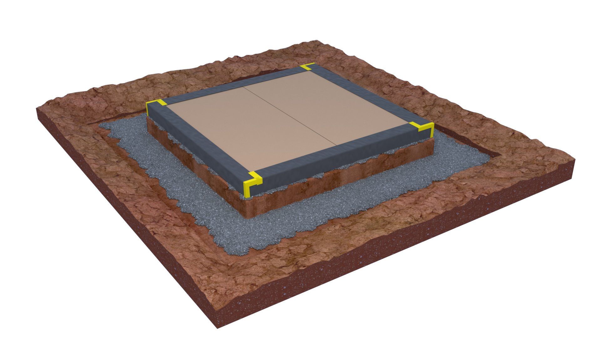 2. Ensure that the area is free of surface water. Heave Stopper must not be placed in waterlogged ground. Lay a sand, shingle or concrete blinding to provide a level bed for the boards to rest on with no pressure points to the underside