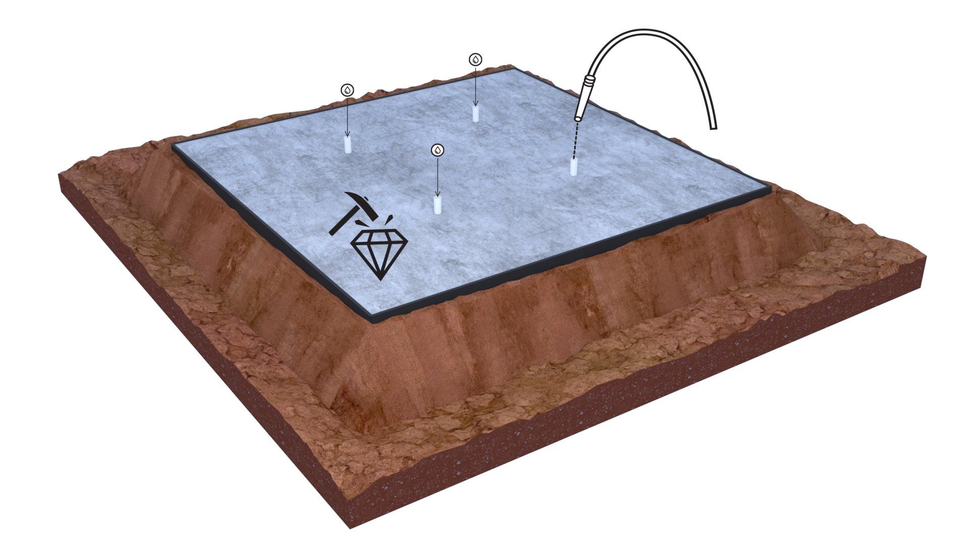 Once the saturation process is complete, strike through the bottom facing and polythene to allow the water to drain.